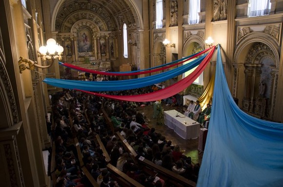Ao fim da tarde, a Orquestra Geração de Lisboa e os Jovens Cantores de Guimarães presentearam todos os presentes com uma apresentação única de qualidade musical, espírito jovem e, por si mesma, uma apresentação que foi hino de esperança no centro deste Átrio dos Gentios. À noite, “Missa Brevis” de João Gil pelos Cantete, uniu os “Gentios do Átrio” na Sé Catedral.