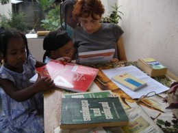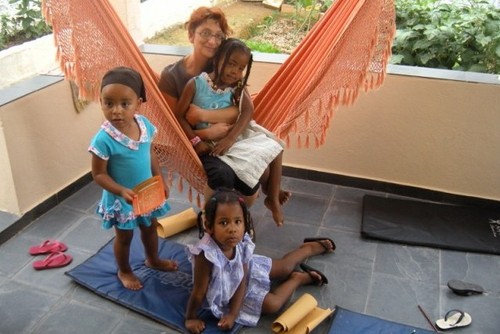 Estando já a estudar o português, vai aproveitando os momentos com as crianças na casa de missão S.Terezinha no Ipê Amarelo para a prática da língua.