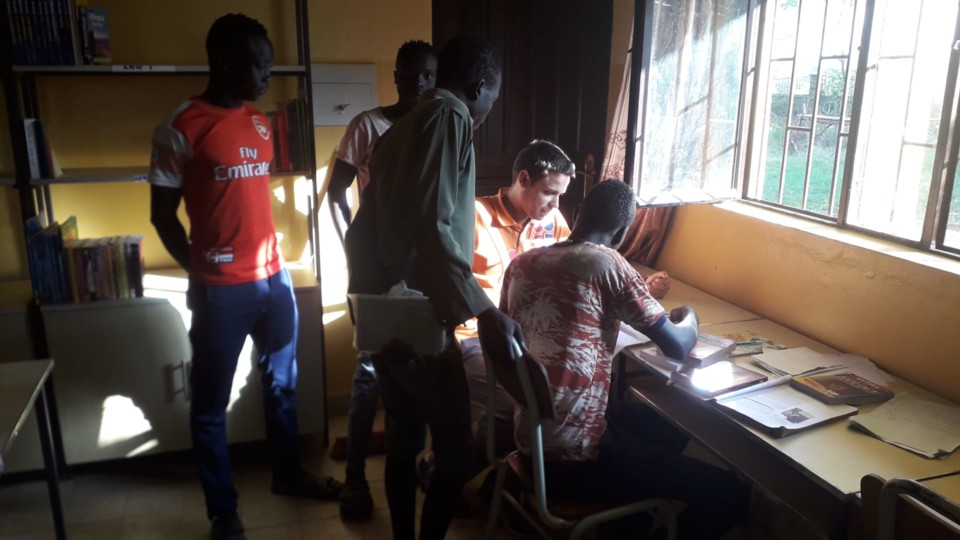 O trabalho, aqui, começa a surgir: a biblioteca que estamos a iniciar, ainda com poucos livros (vamos comprando quando há dinheiro e quando os estudantes nos pedem algum livro em particular), mas que começa a ter vários estudantes; aulas de inglês na biblioteca; aulas de informática na biblioteca; estudo do Novo Testamento com alguns catequistas; actividades com as crianças nas aldeias; visitas e actividades com os jovens que vivem na escola secundária, deslocados de suas casas.